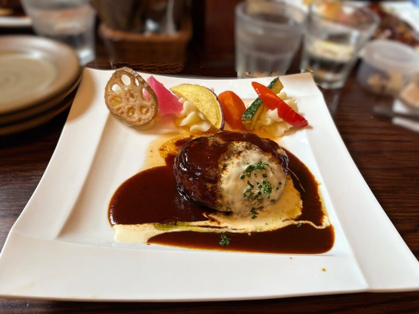 ランチでハンバーグ🍴を食べたのですが、とても美味しかったです✨😝食べ放題のパン🍞も柔らかくて美味しかったです✨